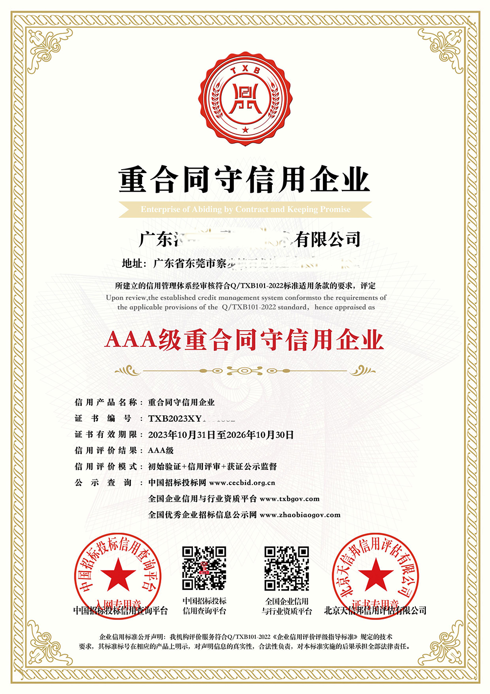 AAA級重合同守信用企業認證是指企業在商業活動中嚴格遵守合同約定,誠實守信,履行合同義務的認證評級。這種認證通常由相關的行業協會、商會或政府機構進行評定和頒發。