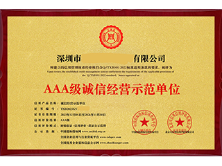 3A認證AAA級誠信經營示范單位認證證書辦理周期:一般三個工作日可以辦理完成。加急當天可以出電子版,次日郵寄實物。
