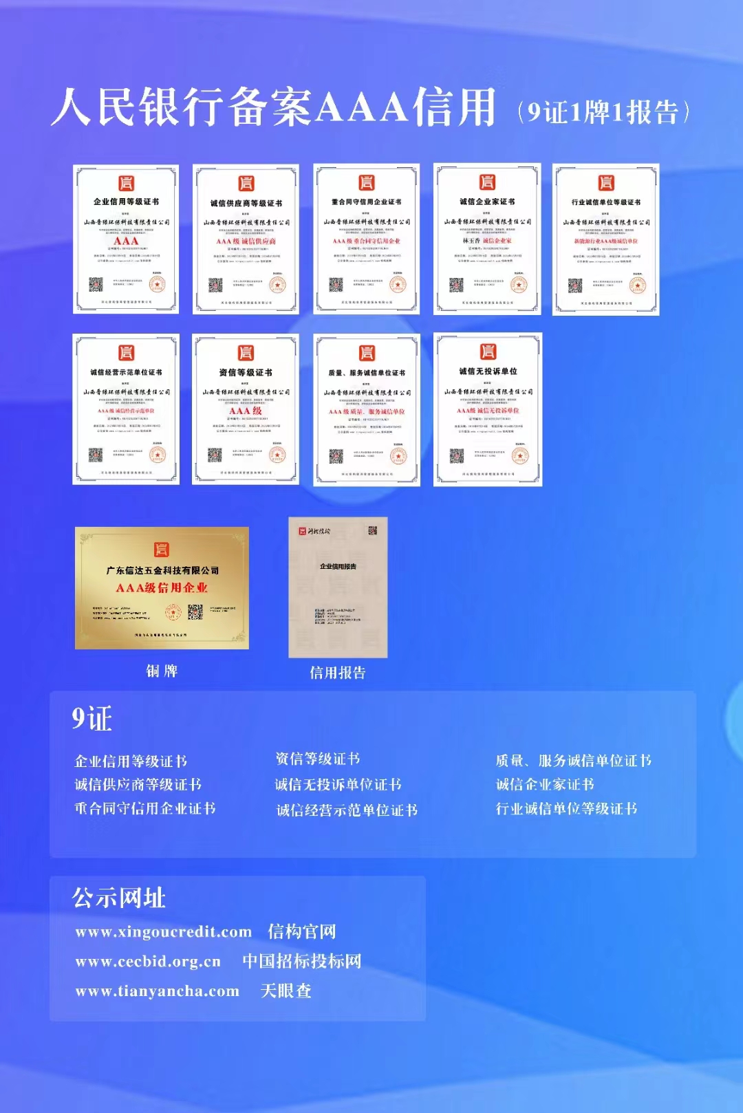 3A認證人民銀行備案的AAA級質量、服務誠信單位認證證書有效期三年。